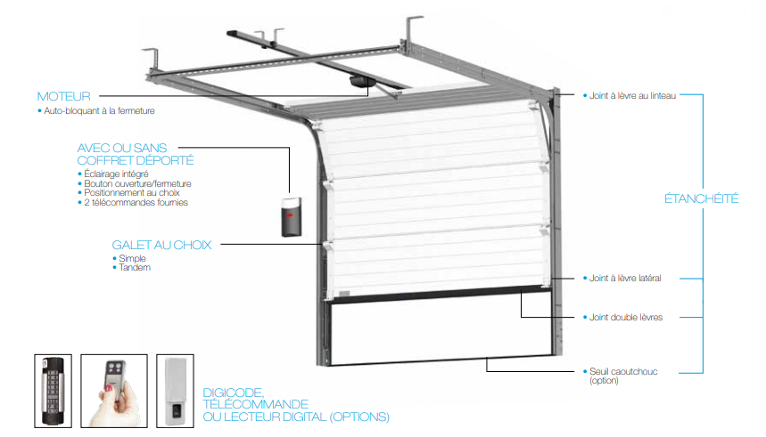 En quête de confort et de facilité de mise en marche vous pouvez choisir une porte de garage sectionnelle motorisée. Couplez cette option avec un portillon intégré qui facilitera vos passages sans avoir besoin d’ouvrir systématiquement la porte de garage en entier.